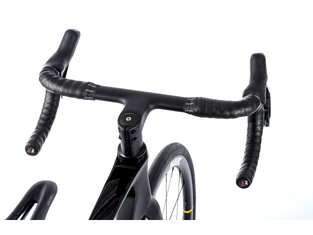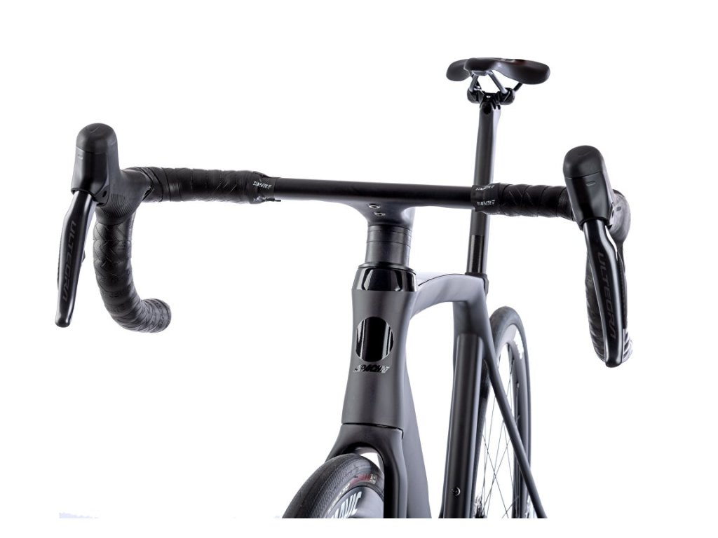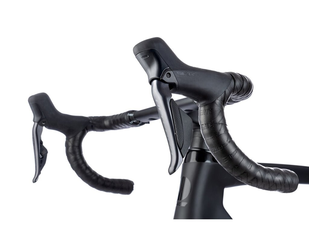 Bezdrátová sada Shimano Di2, zaintegrované brzdové hadice a karbonová kombo řídítka, to vše tvoří dokonalý komplet, který dodává kolu potřebnou rychlost, lehkost a snadnou ovladatelnost.