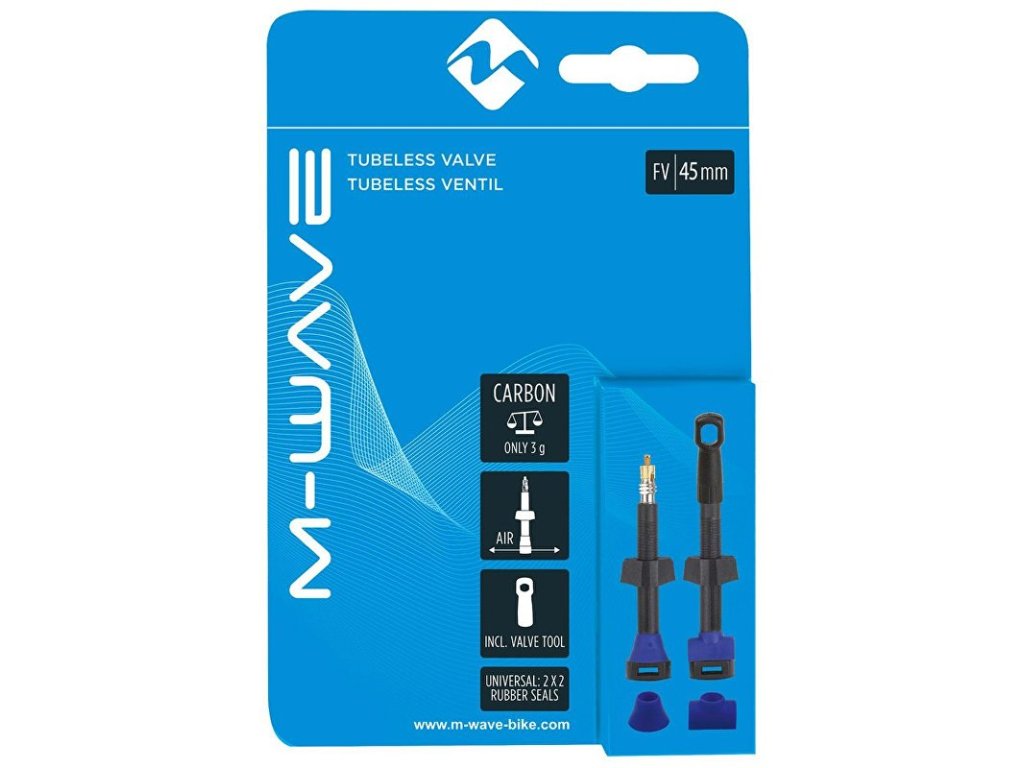 sada kompozitových galuskových ventilků M-WAVE pro bezdušové systémy.Hmotnost pouze 6 g!