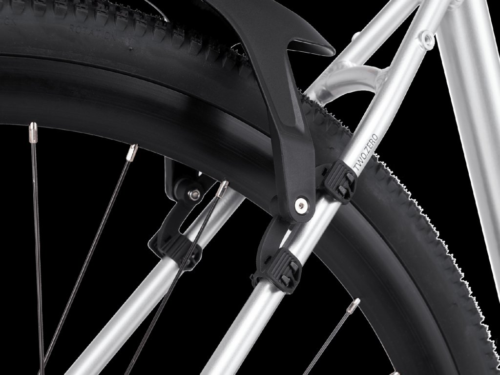 Přední i zadní blatník se upevňují na nohy vidlice pomocí propracovaného systému gumiček, který umožňuje rychlou a snadnou montáž bez nářadí.