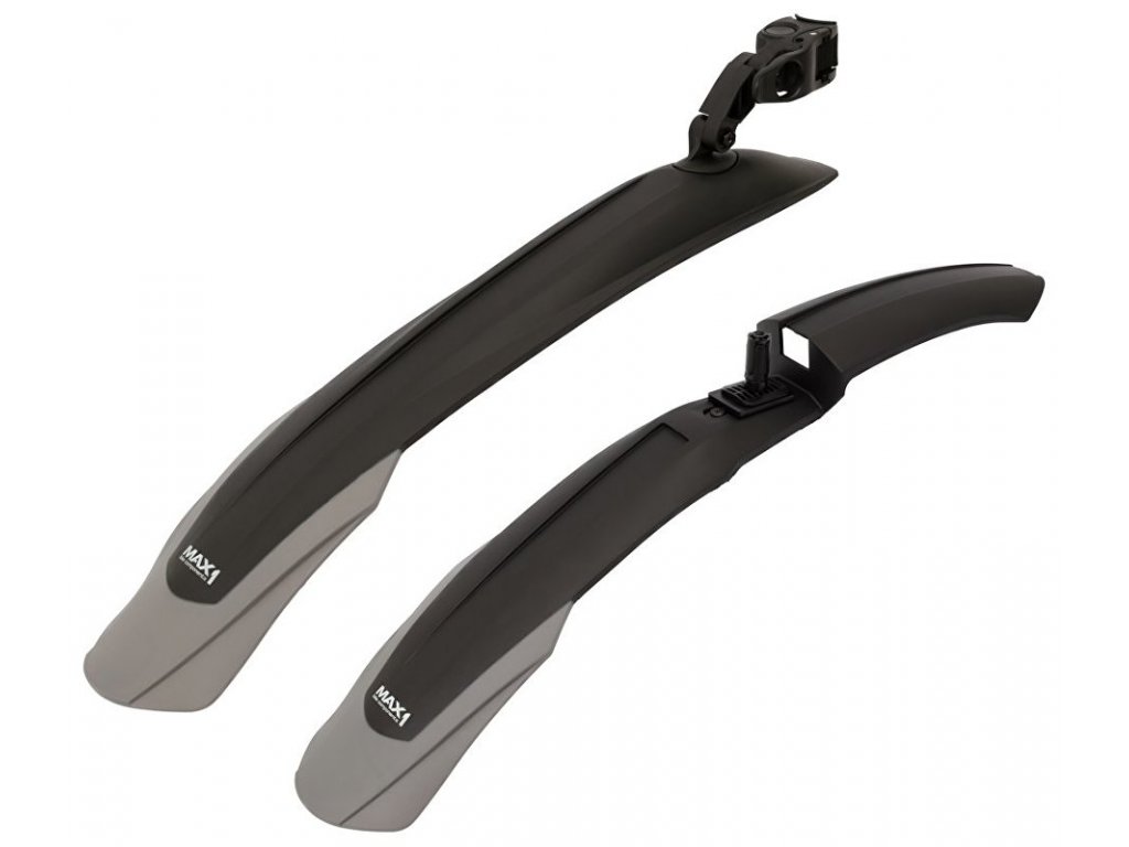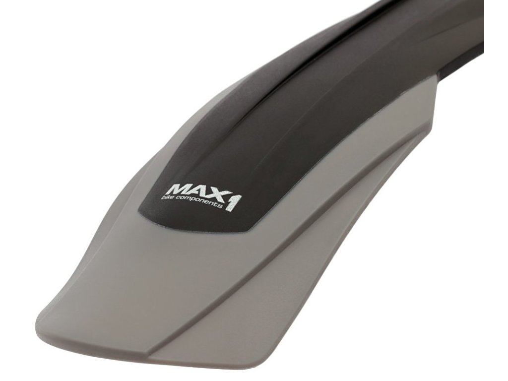 Sada MTB blatníků MAX1 Evolution. Plastová základna doplněná o šedé zástěrky. Montáž na sedlovku s kulatým průřezem a odpruženou vidlici s vnitřním průměrem sloupku 15 - 33 mm.- pro kola 26 - 29"