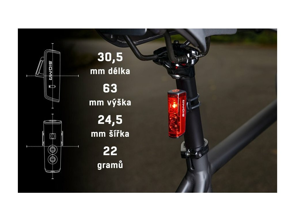 Ať už je vaše kolo sportovní nebo městské, světlo s nízkou hmotností 22 g lze decentně umístit na jakékoliv kolo. Tenký vertikální design spline se sedlovkou a zajistí skvělou viditelnost také z boku.