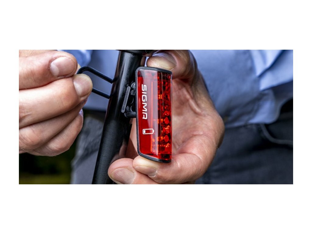 Zadní světlo Sigma Blaze disponuje revoluční funkcí brzdového světla a integrovaným senzorem jasu, který automaticky aktivuje světlo za špatných světelných podmínek.UNIVERZÁLNÍ DESIGN