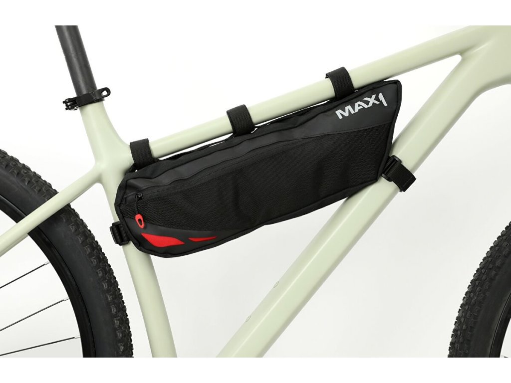 rámová brašna MAX1 pro montáž na horní rámovou trubku, objem 1,6 l, reflexní loga na stranách, krytý horní zip, montáž pomocí velcro pásků