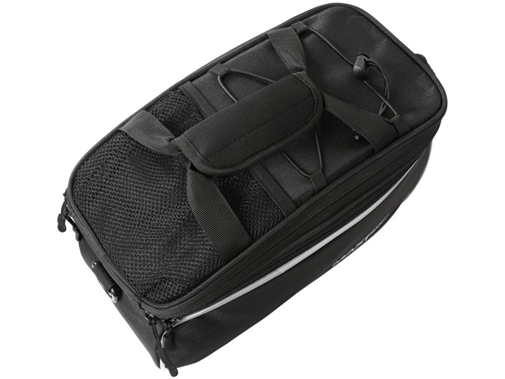 - víceúčelová brašna na nosič s nastavitelným objemem (rozepnutím horního zipu)
