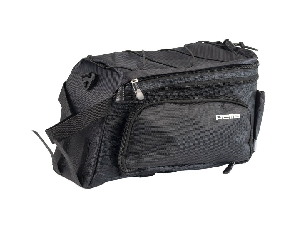 Prostornou brašnu na zadní nosič PELLS Loculo s možností dalšího rozšíření objemu rozepnutím zipu oceníte na dlouhých cyklovýletech. Model má jednoduchou montáž pomocí suchých zipů, lze ho sundat z nosiče a pohodlně přenášet díky přiloženému popruhu a chlubí se dostatkem kapes pro uložení drobnějších předmětů.