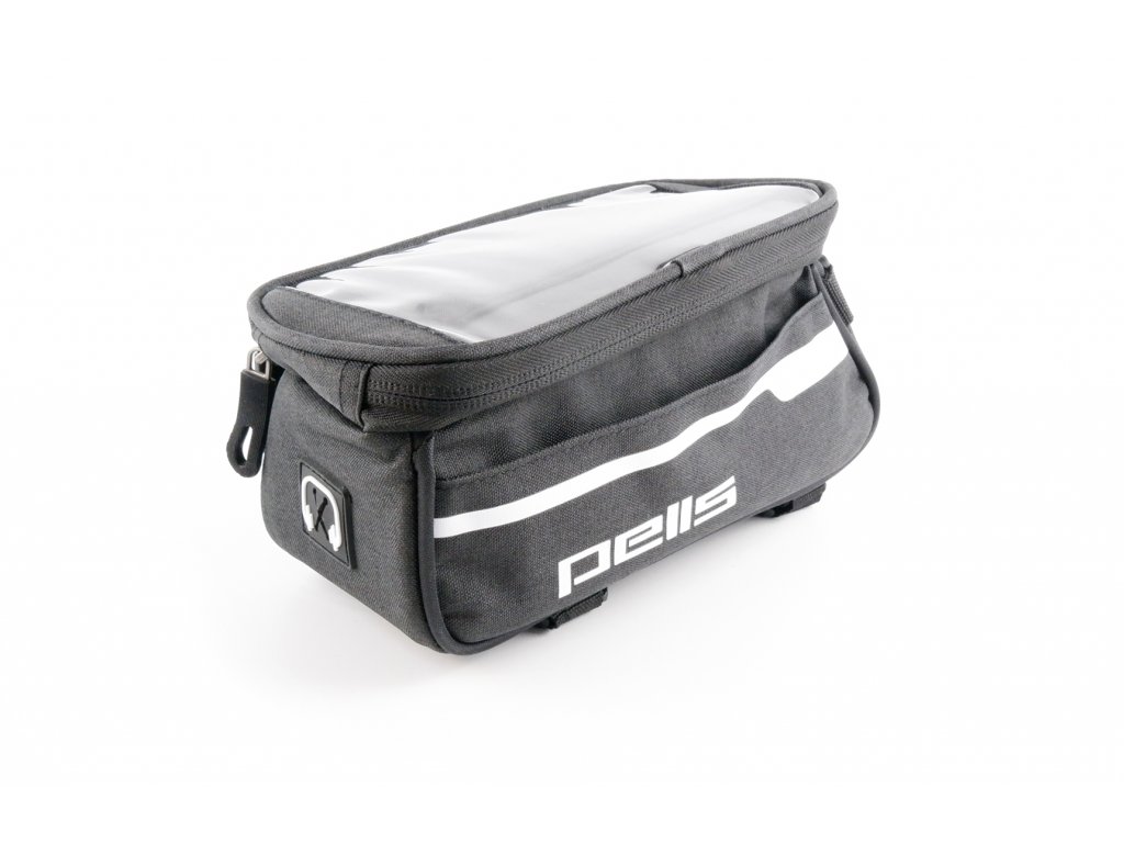 Sportovní voděodolná cyklistická brašna PELLS Camello, kterou jednoduše uchytíte pomocí tří pevných pásků na suchý zip, se chlubí integrovaným pouzdrem na smartphone s čirou fólií, přes kterou můžete ovládat svůj telefon, aniž byste ho museli vytahovat (určeno pro telefony do velikosti 6“ + součástí je otvor na sluchátka). Vnitřní část brašny se skládá z jednoho velkého prostoru s objemem 1,7 l. Můžete tak mít vše po ruce, ať už se bude jednat o cyklistické nářadí nebo osobní věci.