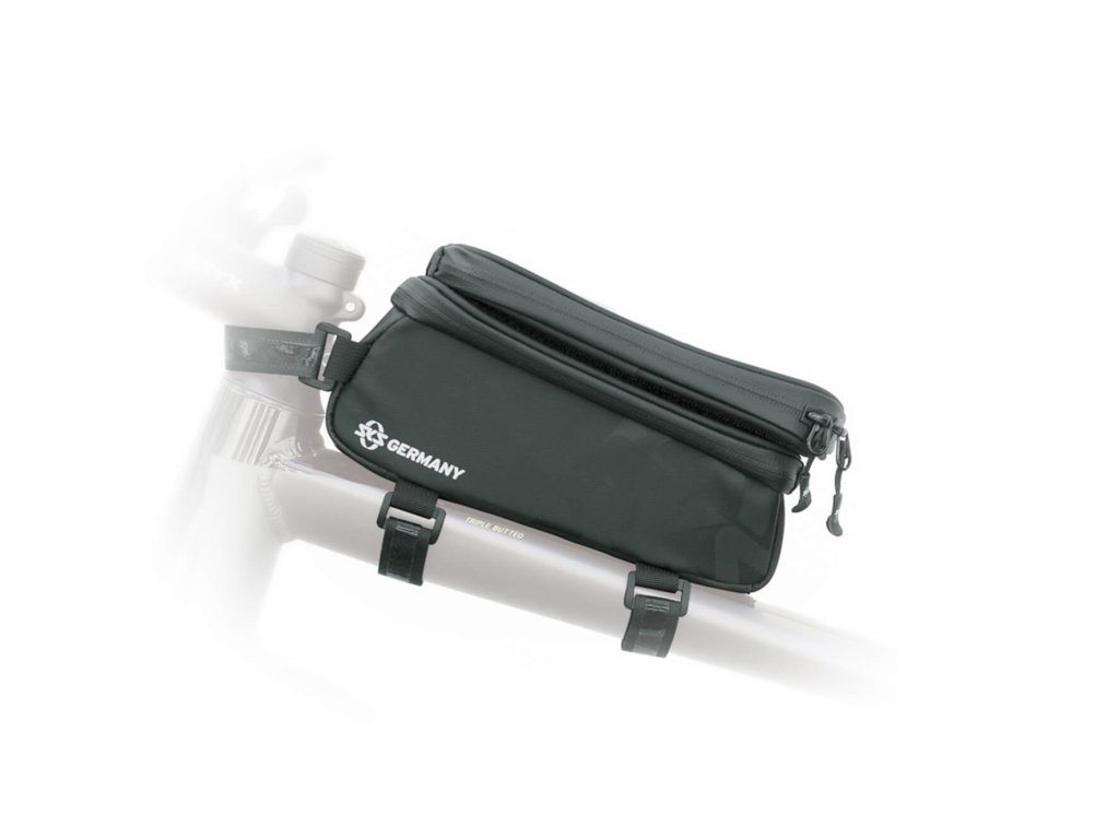 Tato černá brašna kombinuje bezpečnost, praktičnost a moderní funkce. Reflexní prvky na bocích zajišťují lepší viditelnost po setmění, zatímco odolné pogumované suché zipy umožňují pevné a snadné připevnění k rámu kola. Součástí designu je také výstup na sluchátka, který oceníte během delších jízd. Brašna je vyrobena z kvalitního nylonu, má rozměry 200 x 100 x 110 mm a kapacitu 1,35 litru.