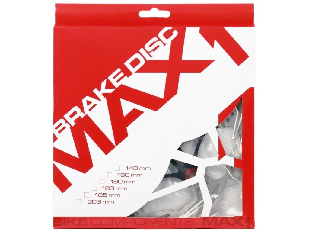 brzdový kotouč MAX1 180 mm pro uchycení na center lock s alu unašečem, integrovaný indikátor opotřebení, hmotnost 176 g