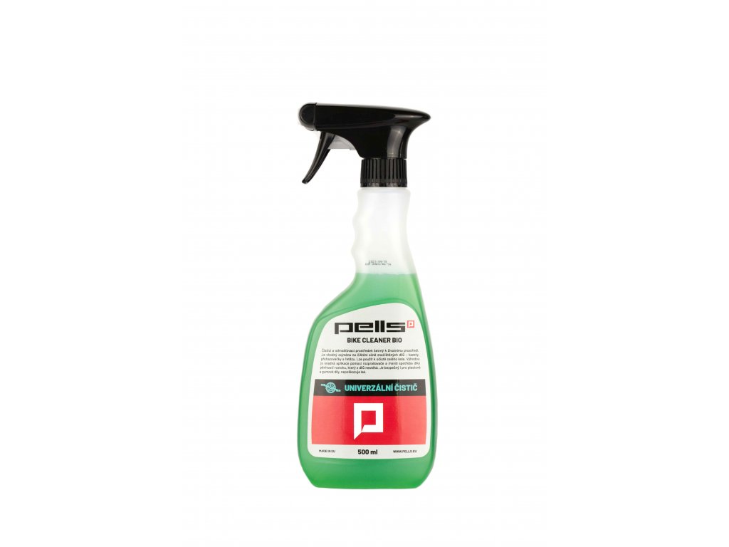 PELLS Cleaner Bio je čistící a odmašťovací prostředek šetrný k životnímu prostředí. Je vhodný zejména na čištění silně znečištěných dílů jako je kazeta, přehazovačka, řetěz, ale lze ho použít k očistě celého kola od nečistot. Výhodou je snadná aplikace pomocí rozprašovače a menší spotřeba díky pěnivosti roztoku, který z dílů nestéká. Je bezpečný i pro plastové a gumové díly a nepoškozuje lak.