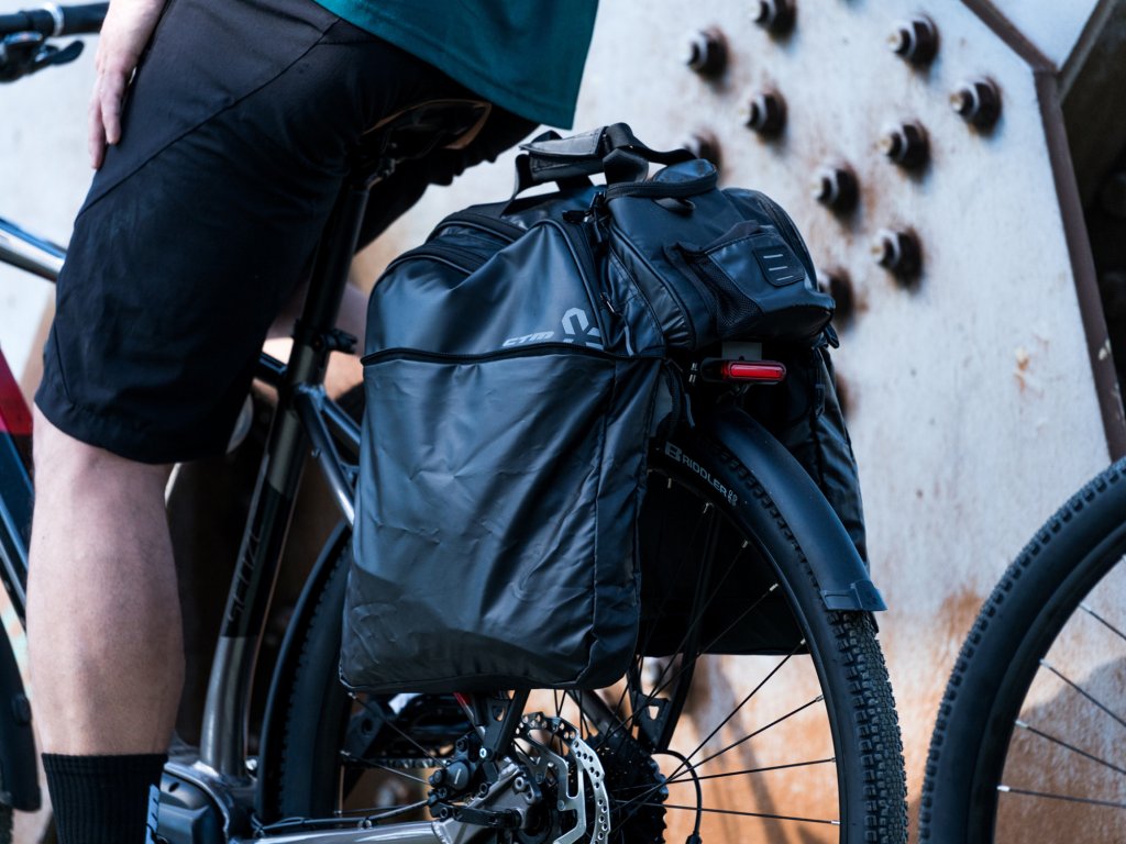 Pogumované protiskluzové upínací popruhy zabraňují nežádoucímu pohybu brašny při jízdě;