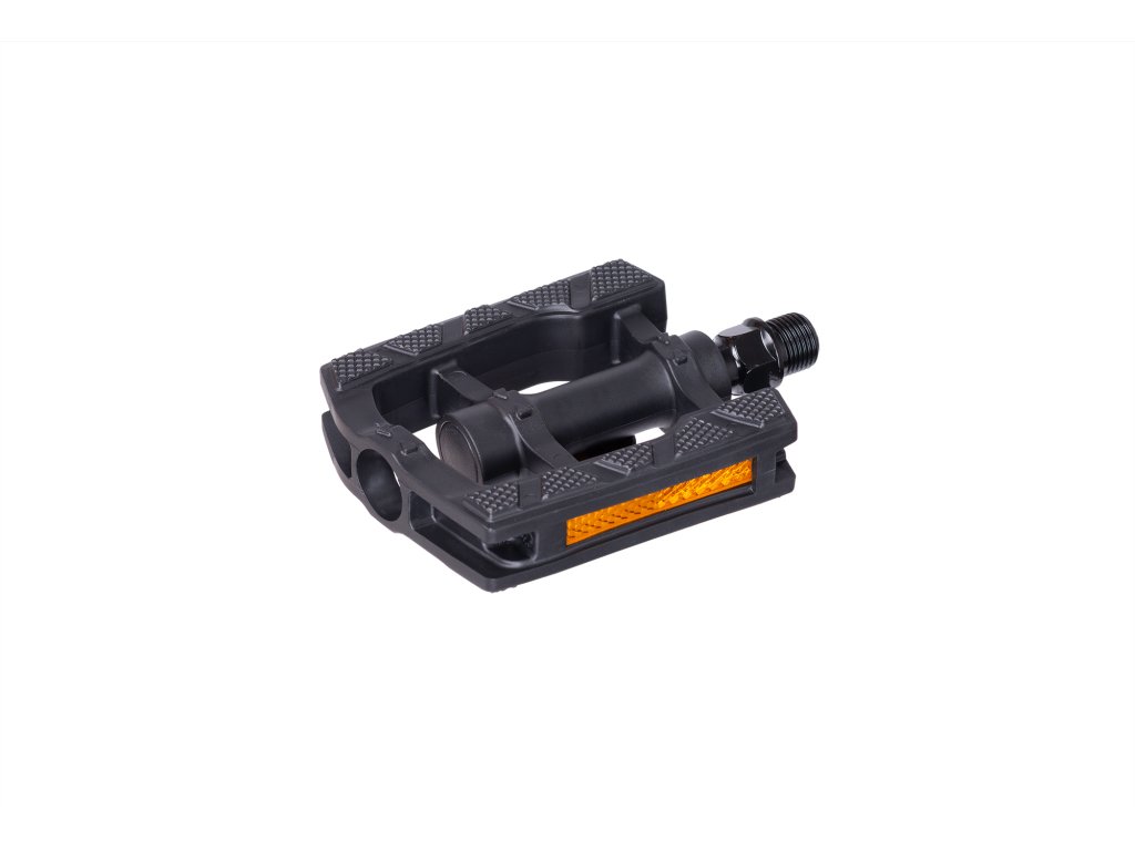 Plastové pedály z vysoce kvalitního propylenu s odrazkami pro zvýšení bezpečnosti;Materiál osy: 7mm robustní bórová ocel;