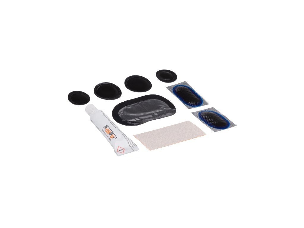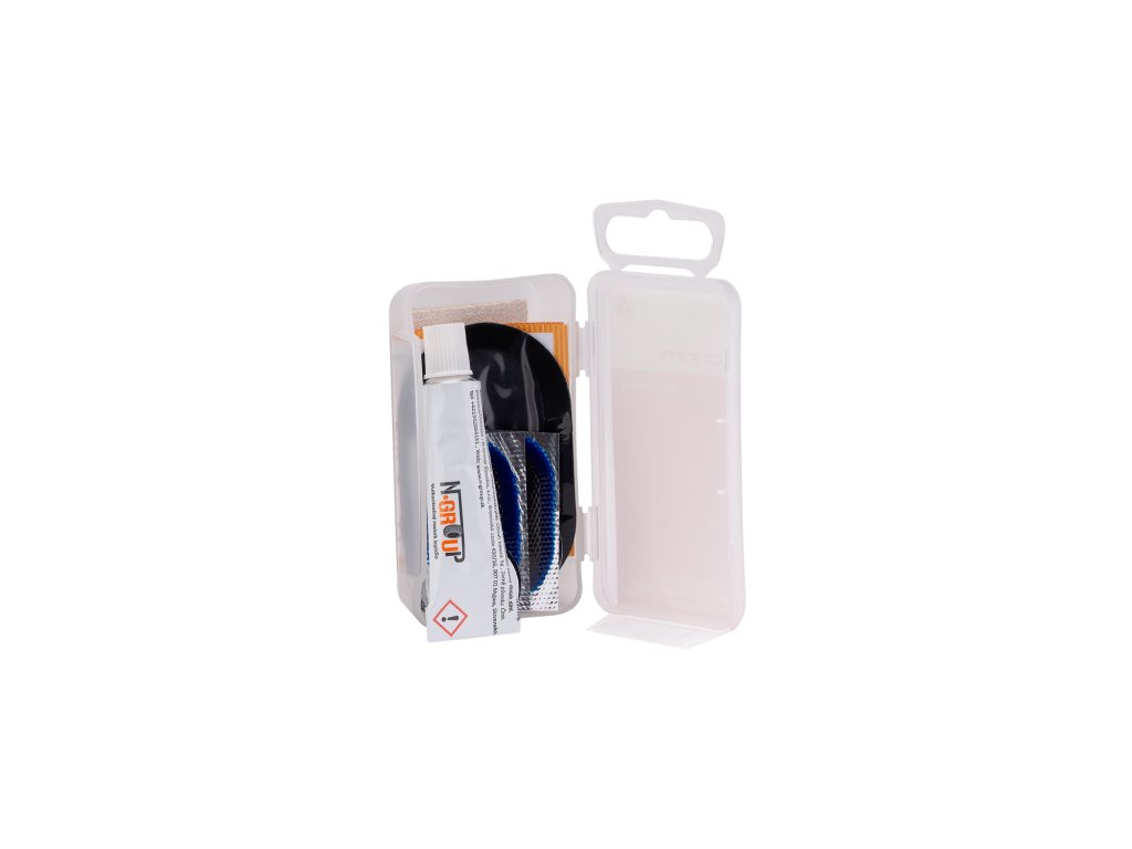 Sada obsahuje: lepidlo v tubě 5 ml, 2x samolepící záplata 25 mm, 2x samolepící záplata 20 mm, 2x samolepící záplata ovál 24x34mm, 1x samolepící záplata ovál 35x60mm, 1x brusný papír; Baleno v bílé plastové krabičce CTMDistributor Belve s.r.o. - Slovensko ul. Holubyho 295 916 01 Stará Turá