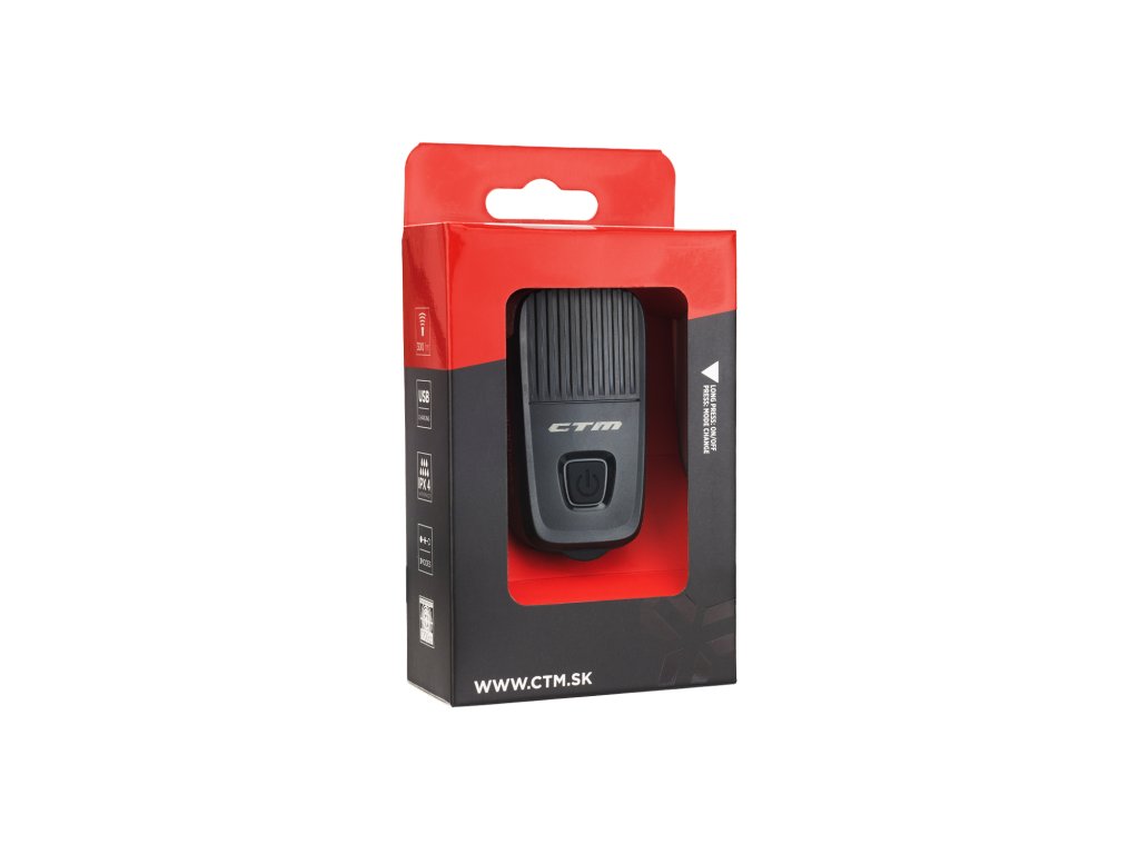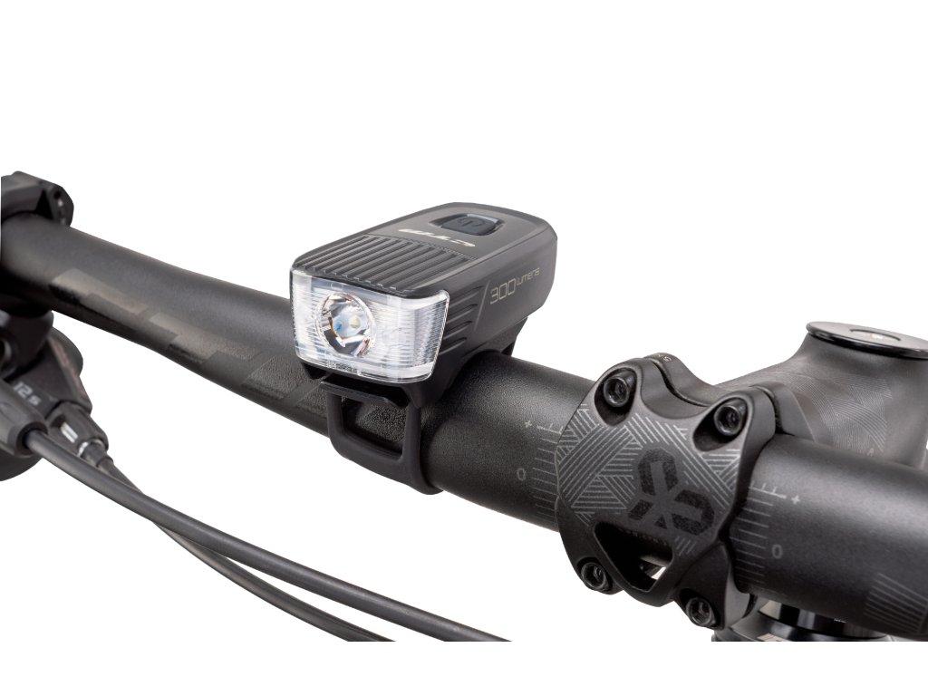 Přední výkonné osvětlení s diodou CREE XP-G2 a možností dobíjení přes USB;Svítivost: 300 lumenů;