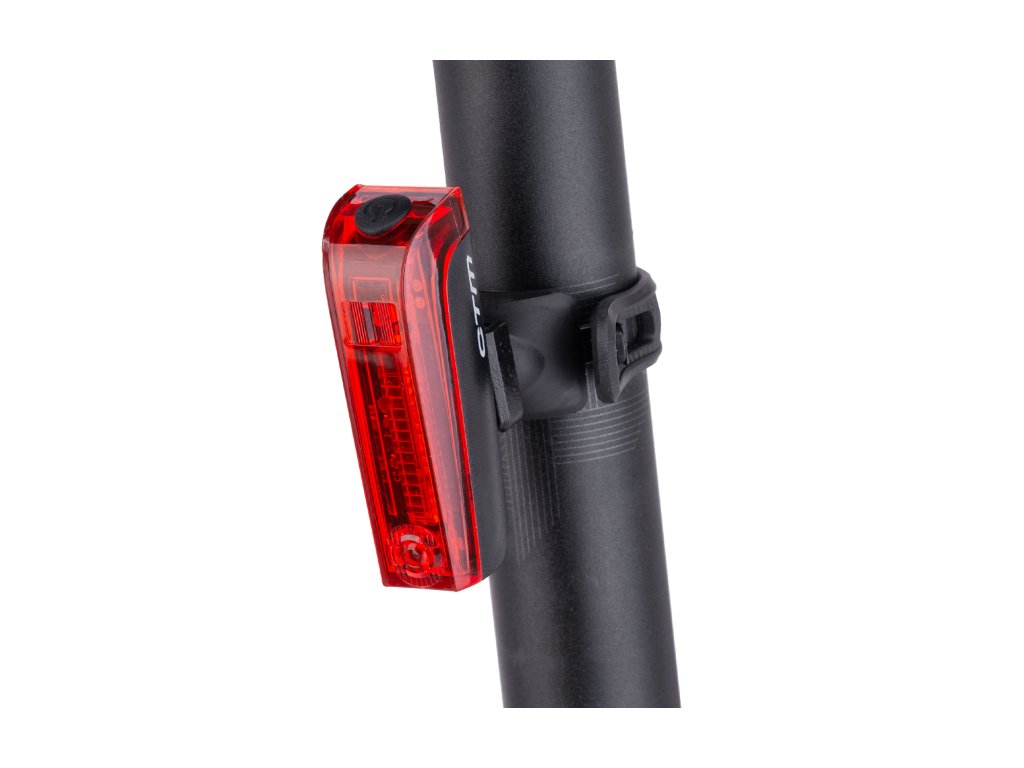 Zadní nabíjecí světlo se senzorem brzdění a automatickým jasem;1 výkonná hlavní LED dioda spolu s boční rozptylovací diodou je doplněna o brzdové světlo;