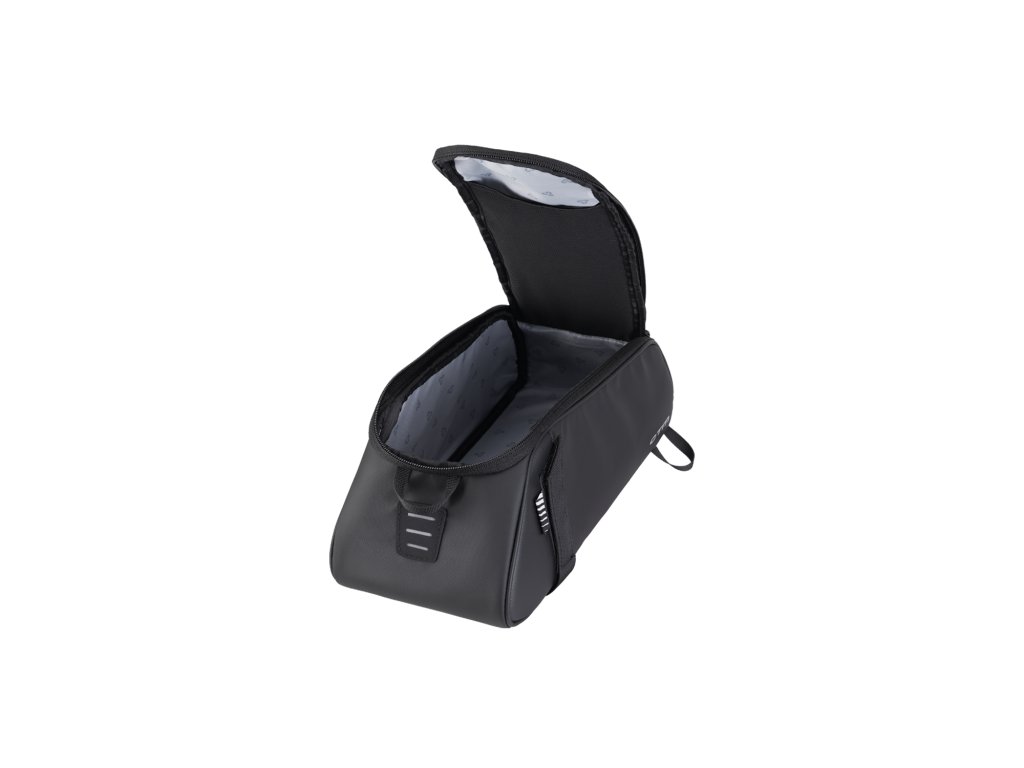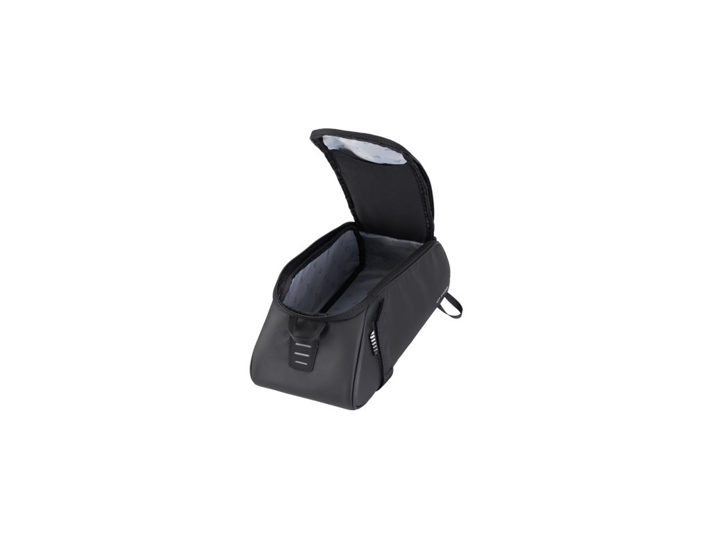 Šedý vnitřek brašny pro snadnější manipulaci v brašně; Pogumované protiskluzové upínací popruhy zabraňují nežádoucímu pohybu brašny při jízdě;