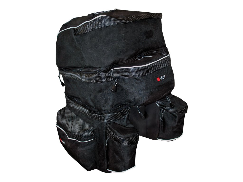 Velká 3 dílná cyklistická brašna na nosič Lifefit s variabilním uspořádáním- 2 velké horizontální kapsy se zapínáním na zip a s možností úplného odepnutí, každou kapsu lze odepnout zvlášť