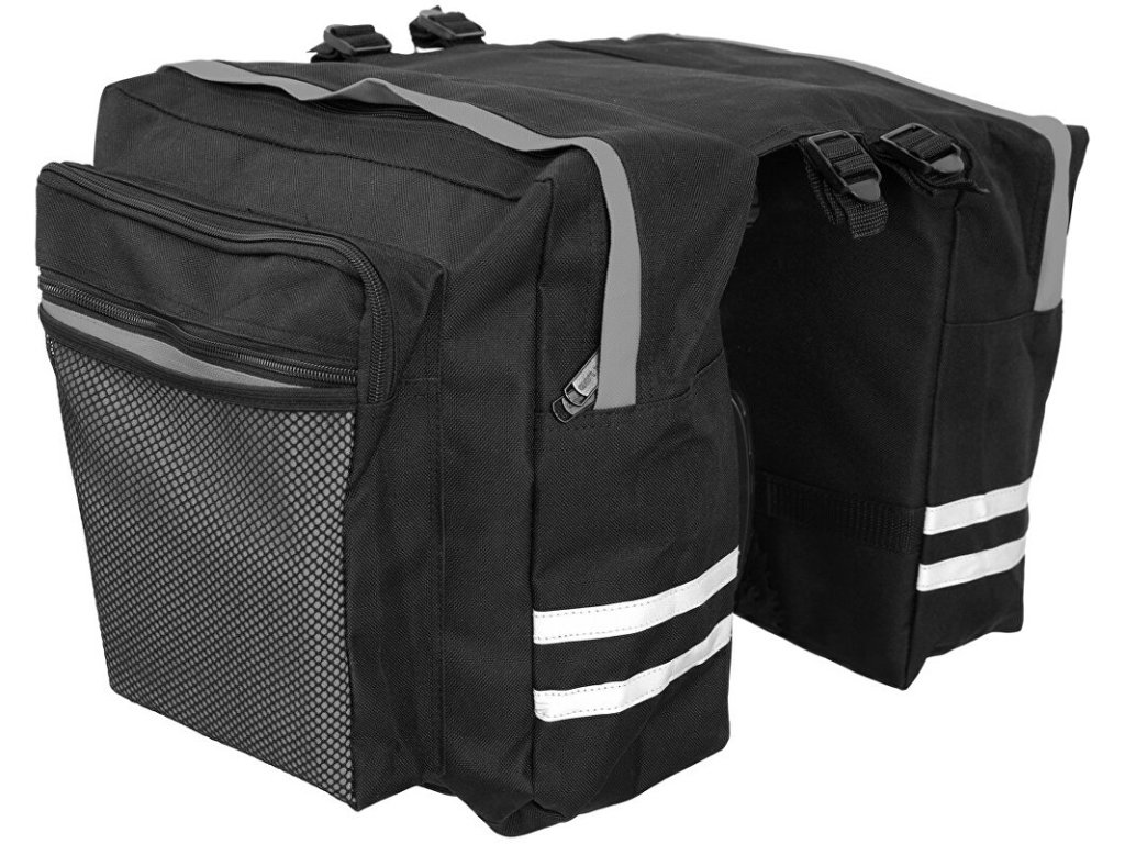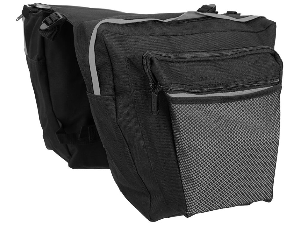 Zadní brašna na nosič - dvojbrašna.Montáž na nosič pomocí přasek. Celkem 8 kapes ( 2 hlavní s oboustranným zipem, 4 menší na zip a 2 síťové).