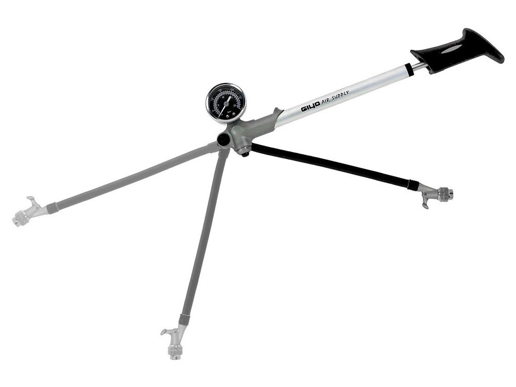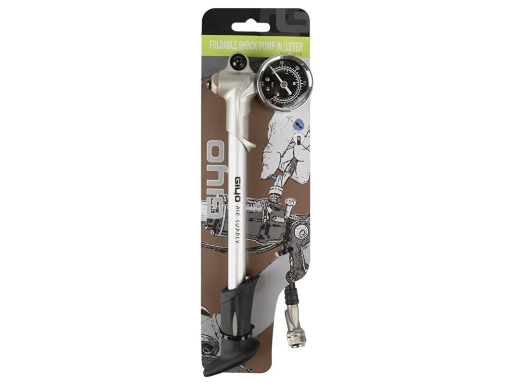 Hustilka na tlumiče a odpružené vidlice se skládací hadičkou vybavená upouštěcím ventilem, díky kterému můžete velice citlivě nastavovat požadované tlaky. Přesný a přehledný manometr měří tlak v jednotkách bar a psi.Specifikace:
