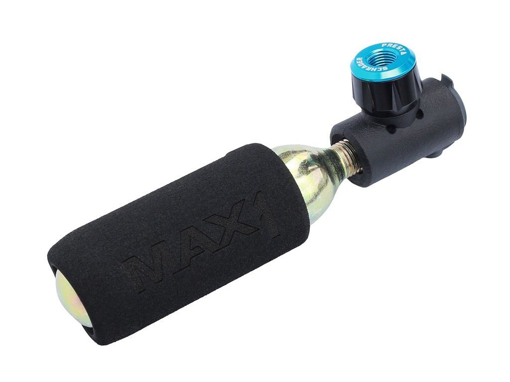Kompaktní bombičková hustilka MAX1 Air CO2 s univerzální hlavou pro AV i FV ventil.Hlava vyrobena z kompozitního plastu a Alu CNC částí.