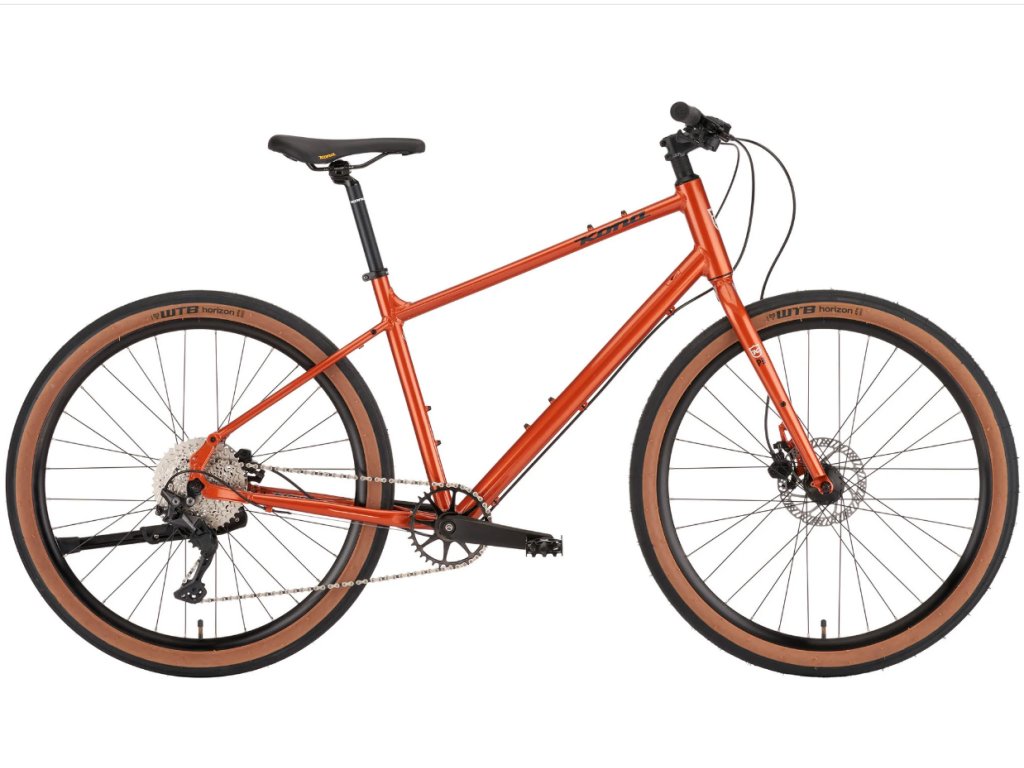 Kona 36e Dew Plus OrangeKona 36e Dew Plus Orange je pohodlné, všestranné městské kolo s hliníkovým rámem, hydraulickými kotoučovými brzdami a převody Shimano Deore 10 rychlostí, které poskytuje široký rozsah pro jízdu po plochých silnicích i zvládání kopců. Pláště WTB Horizon Comp 650×47c společně s geometrií rámu zajišťují stabilitu i komfort na delších cestách nebo méně kvalitním povrchu. Je vybaven stojánkem, což přidává praktičnost pro každodenní využití.