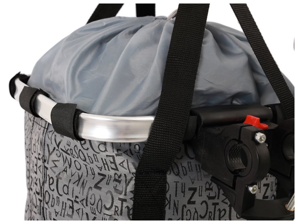 Látkový koš na řidítka s lehkým hliníkovým rámem. Koš jde jednoduše sejmout z rychloupínacího držáku a používat samostatně. Vhodné pro turistiku, do města nebo pro malá plemena psů.- pro řidítka 22,2 - 31,8 mm