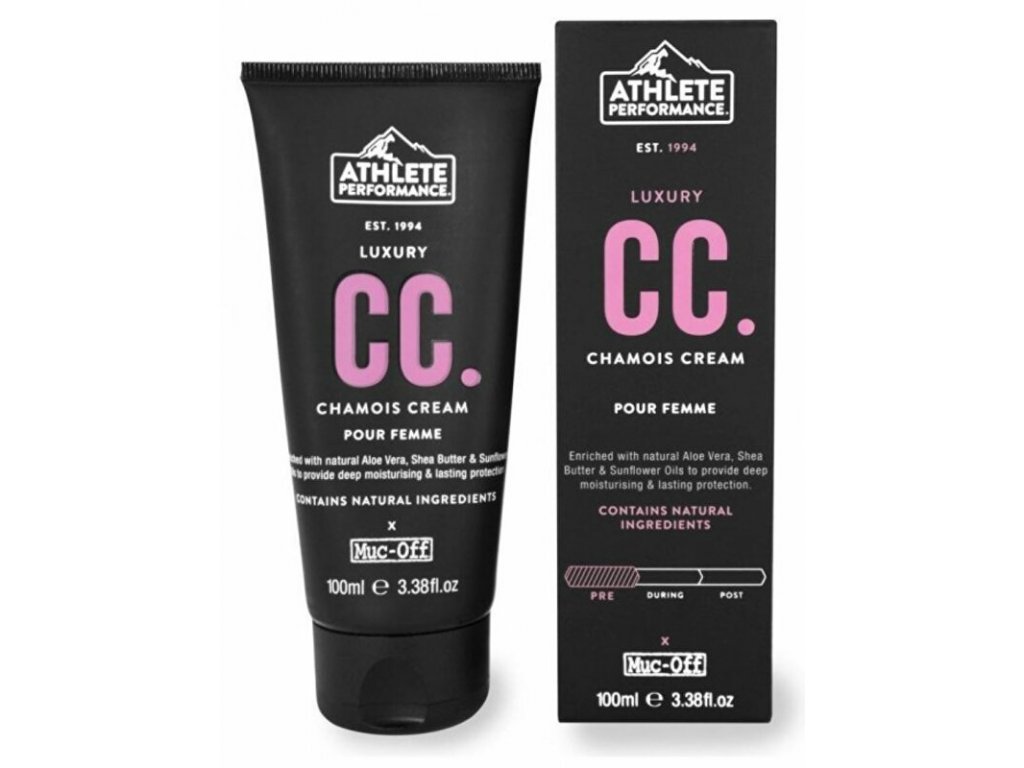 Muc Off Chamois Cream pour femme 100 ml je díky svému složení určen zejména k hloubkové hydrataci pokožky žen a zajištění absolutní ochrany a komfortu při dlouhých jízdách nebo bězích, ale své uplatnění nalezne i při jiných sportovních aktivitách a to za každého počasí.Muc-Off Luxury Chamois Cream 100 ml vytváří ochrannou bariéru, která přispívá k ochraně pokožky před jejím poškozením a to zejména na citlivých a exponovaných místech, má anti-bakteriální účinek a rovněž napomáhá k regeneraci a hojení již poškozené pokožky.