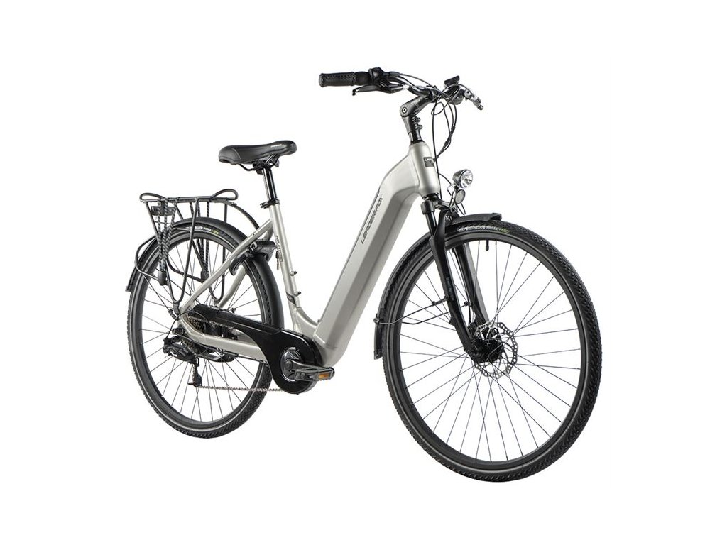 Městské elektrokolo Leader Fox INDUKTORA 28" s hliníkovým rámem, odpruženou přední vidlicí, kotoučovými brzdami. Elegantní městský design se snadným nastupováním.Na jízdu po městě