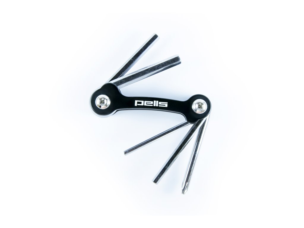 Sadu cyklistické nářadí PELLS Hando 5 si zamilujete díky skladnosti, univerzálnosti a praktičnosti. Klíče jsou vyrobeny z kvalitní chromované vanadové oceli, tudíž celková hmotnost zůstává nízká a vy ji na kole ani nepocítíte.
