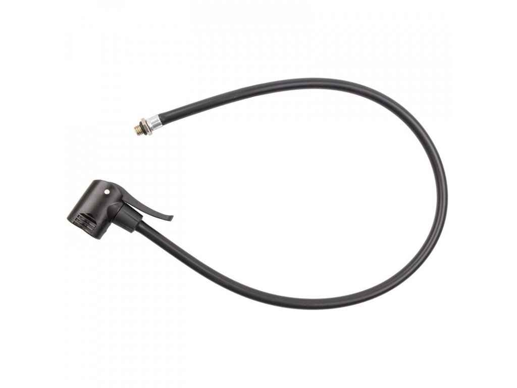 Náhradní duální hlava s hadicí 60 cm, se závitem 8mm pro našroubování do nožní pumpy AV závit, závit lze odříznout a nasunout na trn s převlečnou maticí (není součástí), náhrada produktu 13019.Distributor: Cyklomax, spol. s r.o., Pardubická 504, 533 52 Srch. E-mail: info@cyklomax.cz