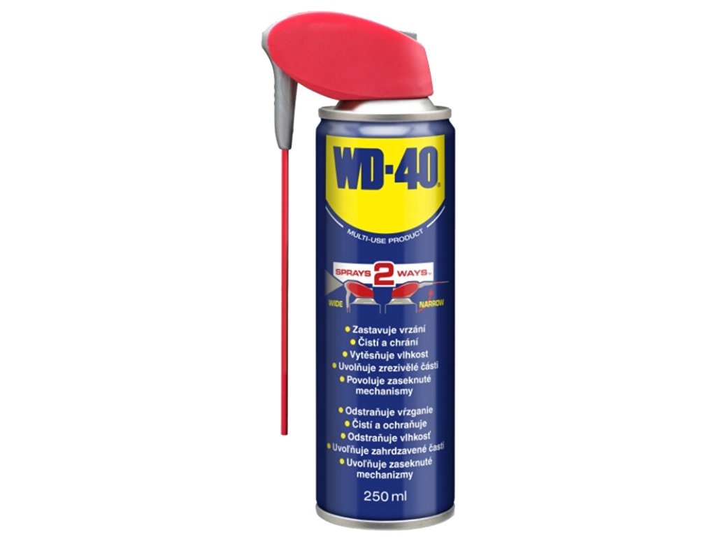 Aerosolové mazivo, které má lepší vlastnosti než běžná lehká maziva, antikorozní přípravky, prostředky k vytěsnění vlhkosti a silikonové spreje.Úspěch WD-40 je založen na jedné jednoduché vlastnosti - má velmi vysokou povrchovou přilnavost ke kovům a je silně vodoodpudivý.