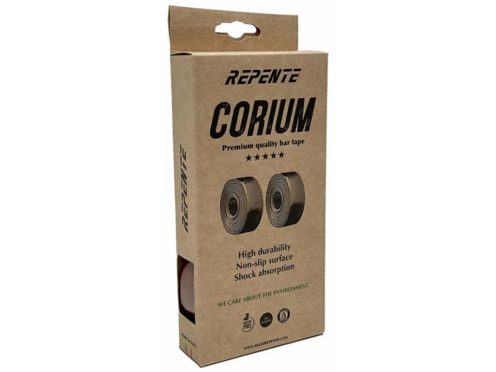 Omotávka REPENTE Corium inspirována barvou přírodní kůže vyrobená kombinací materiálů nejvyšší kvality pro cyklisty, kteří hledají doplňky v klasickém vzhledu. Vyrobená z nealergenních materiálů vyznačujících se prvotřídní tlumící schopností, výbornou elasticitou a velmi nízkou hmotností.omotávka Corium je výsledkem kombinace tří druhů materiálů, vybraných pro jejich specifické technické vlastnosti: extrémně odolný polyuretan s výbornou přilnavostí doplněný o mikrovlákno s výbornou pevností a pěnou EVA s vysokou tlumicí schopností. Výsledkem je příjemný a jistý úchop za každých podmínek. Povrchová vrstva pásky je dobře omyvatelná a odolná proti oděru.