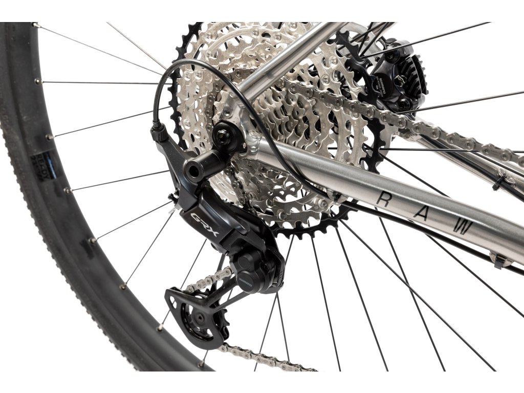 Spolehlivé komponenty Shimano GRX s jednopřevodníkem vpředu dávají Raw 1 jednoduchost a dostatečný rozsah pro všechny druhy terénů. Standardně dodávaná teleskopická sedlovka, ovládaná levou brzdovou pákou, usnadní náročnější sjezdy nebo dovolí odlehčit zádům při opravdu dlouhých vyjížďkách.