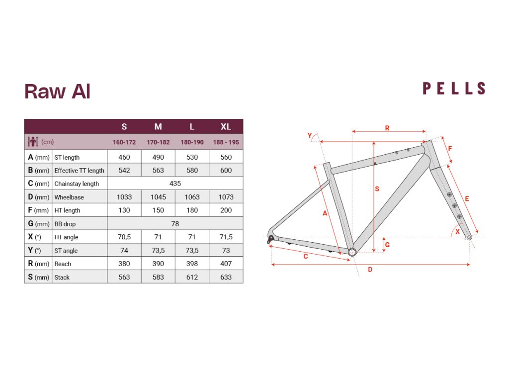 | Rám: | Pells P2 Lite Alloy, Gravel Geometry, 142 mm Thru Axle, Tapered HT, Headset Cable Routing |