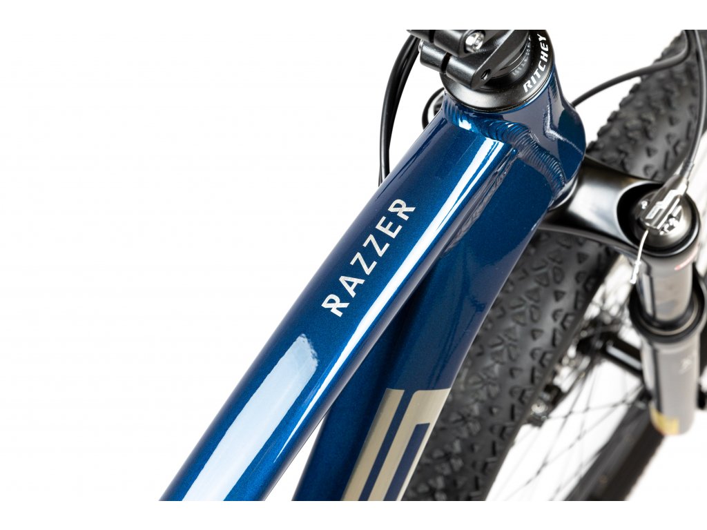 Nejklasičtější klasika. Dostupné horské kolo s širokou škálu využití – od kondiční jízdy přes rodinné výlety až po cesty do práce – Razzer 1 si poradí se vším. Lehký hliníkový rám Pells Alloy je osazen vzduchovou vidlicí SR Suntour XCR32 Air 15Q se zdvihem 100 mm a pevnou osou, která skvěle tlumí nerovnosti terénu. O efektivní přenos síly se stará pohon Shimano Deore 1x12, spolehlivé brzdy Shimano BR-MT200 zajišťují bezpečnost a dokonale přilnavé pláště Continental Race King 29/2,2 dodávají jistotu i v mírném terénu. Razzer 1 je zárukou výborných jízdních vlastností a spolehlivosti v každé situaci.