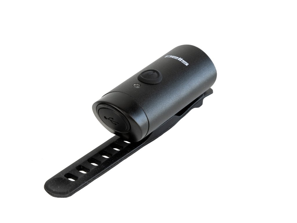 Přední světlo PELLS Helio o výkonu 500 lumenů má voděodolné kovové tělo, gumový pásek pro uchycení, pět režimů svícení a kompaktní velikost, což z něj dělá neocenitelný doplněk pro vaše kolo. Součástí je ukazatel stavu baterie, který lze aktivovat dvojklikem při vypnutém světle.