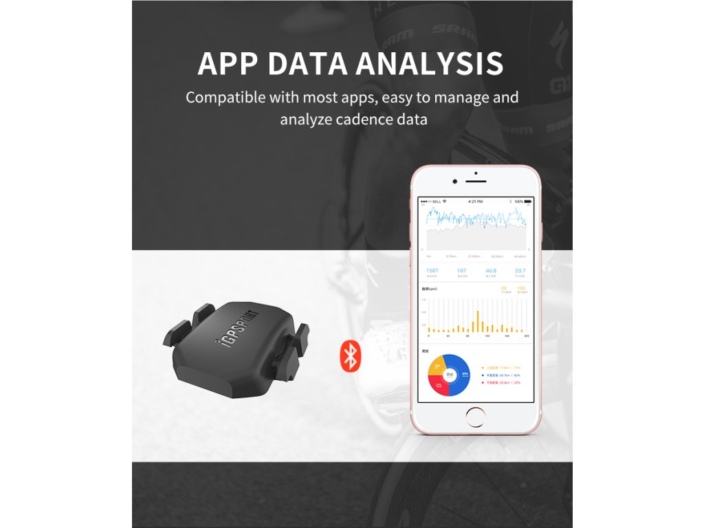 Snímač využívá technologii Bluetooth 5.0 a ANT+ pro snadné propojení s cyklopočítači, mobilními aplikacemi i sportovními hodinkami.