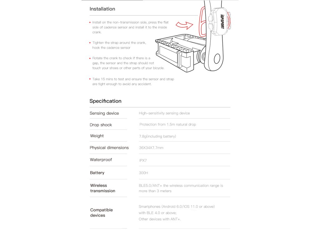 Díky kompaktnímu designu, nízké hmotnosti a snadné montáži na kliky kola poskytuje pohodlné a přesné měření bez potřeby magnetů.