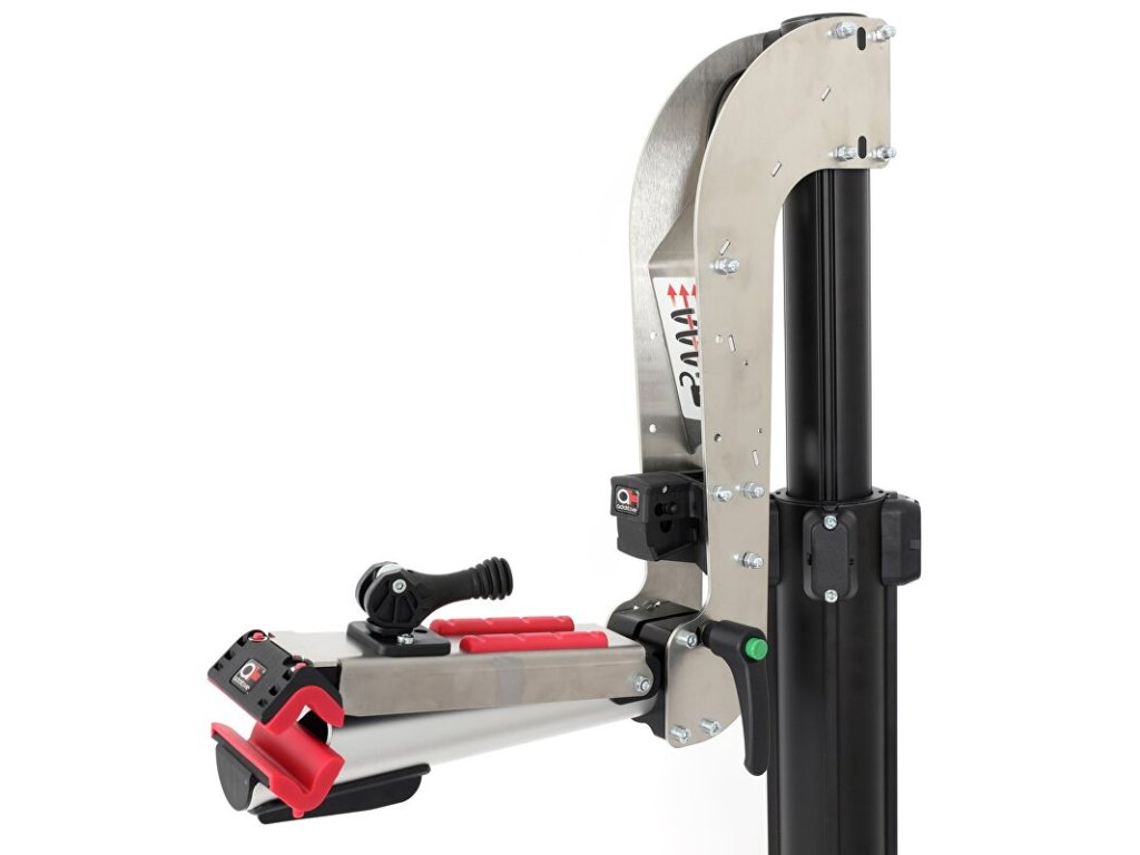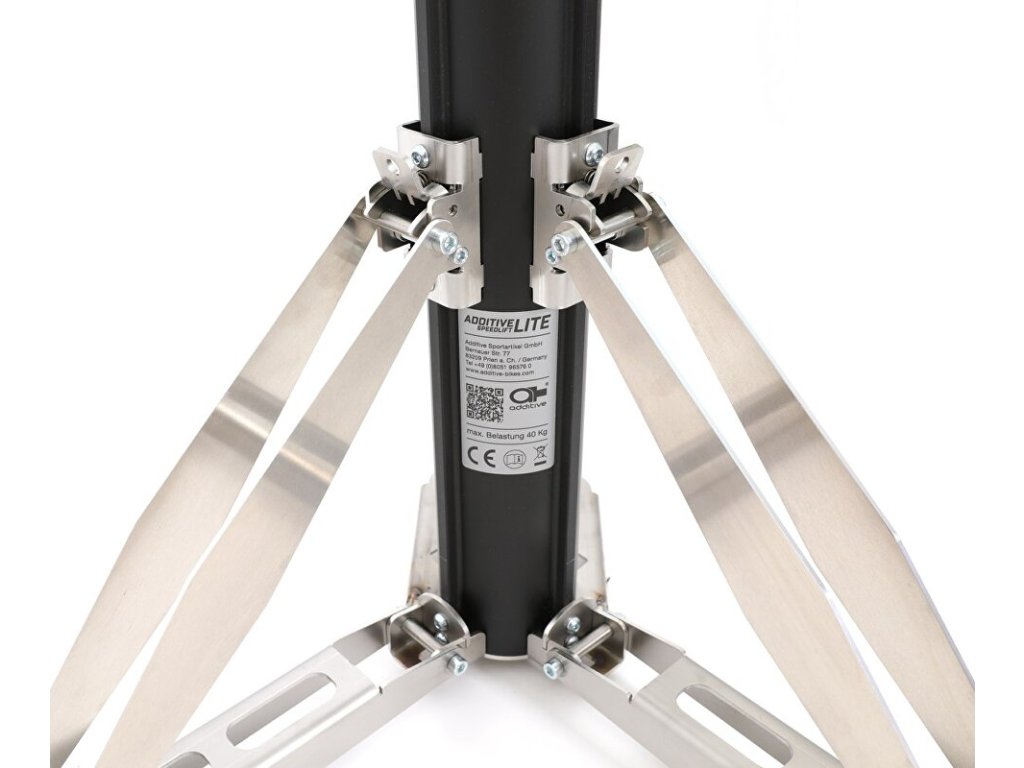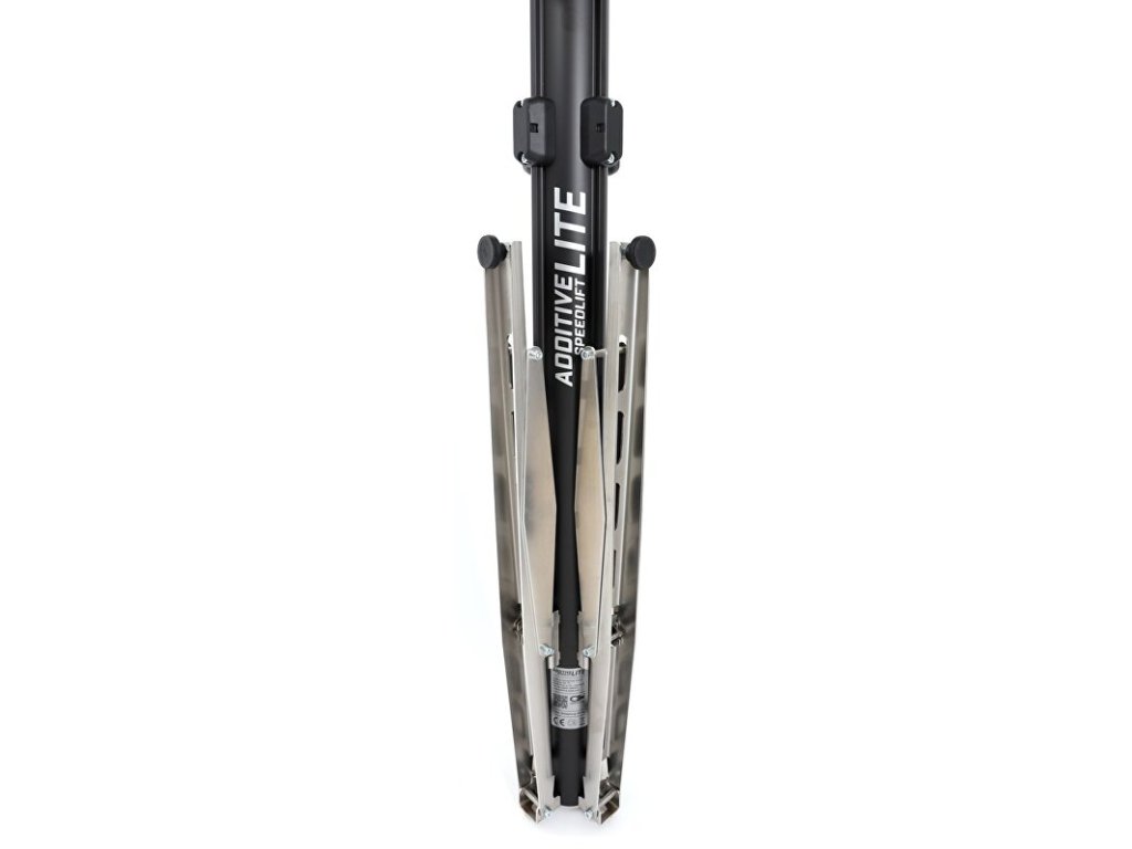 Stojan montážní pneumatický pro Ebike ADDITIVE Speedlift Lite s čelistíSkládací pneumatický montážní stojan ADDITIVE Speedlift Lite funguje bez závislosti na elektrické energii s maximálním zatížením 40 kg. Zvedání do požadované pozice se ovládá jednoduše pomocí páky s pojistkou. Po stisknutí pojistky lze s minimální námahou zvednout i těžká elektrokola směrem vzhůru, lehčí kola bez motoru začnou pomalu stoupat vzhůru bez jakékoliv námahy. Ke spuštění stačí lehce zatlačit kolo směrem dolů.