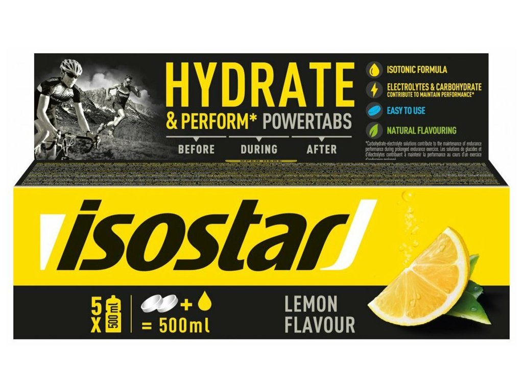 Isostar tablety k rychlé hydrataci a okamžité energii. Unikátní uhlovodanový profil vyvinutý tak, aby poskytoval rychle energii – ideální pro ty, kdo sportují až jednu hodinu.Obsahuje glukózový sirup a maltodextrinové uhlovodany, které jsou snadno stravitelné a tělo je rychle vstřebává, takže jako zdroj energie jsou okamžitě k dispozici.