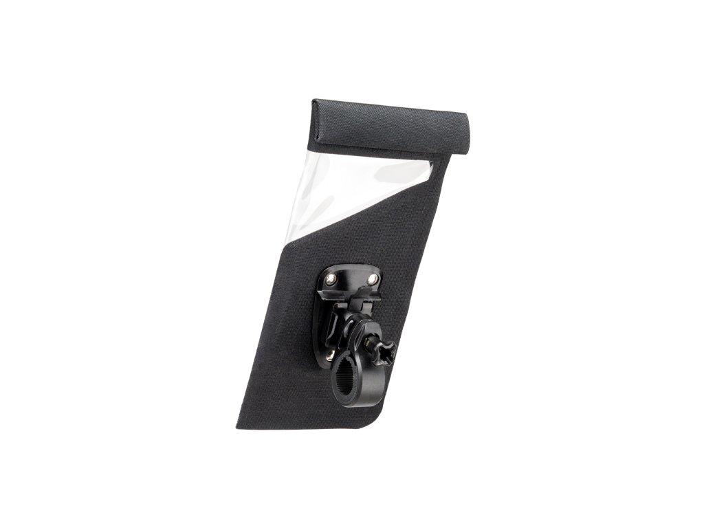 Držák na řídítka má odnímatelnou objímku s klipem a lze jej polohovat;