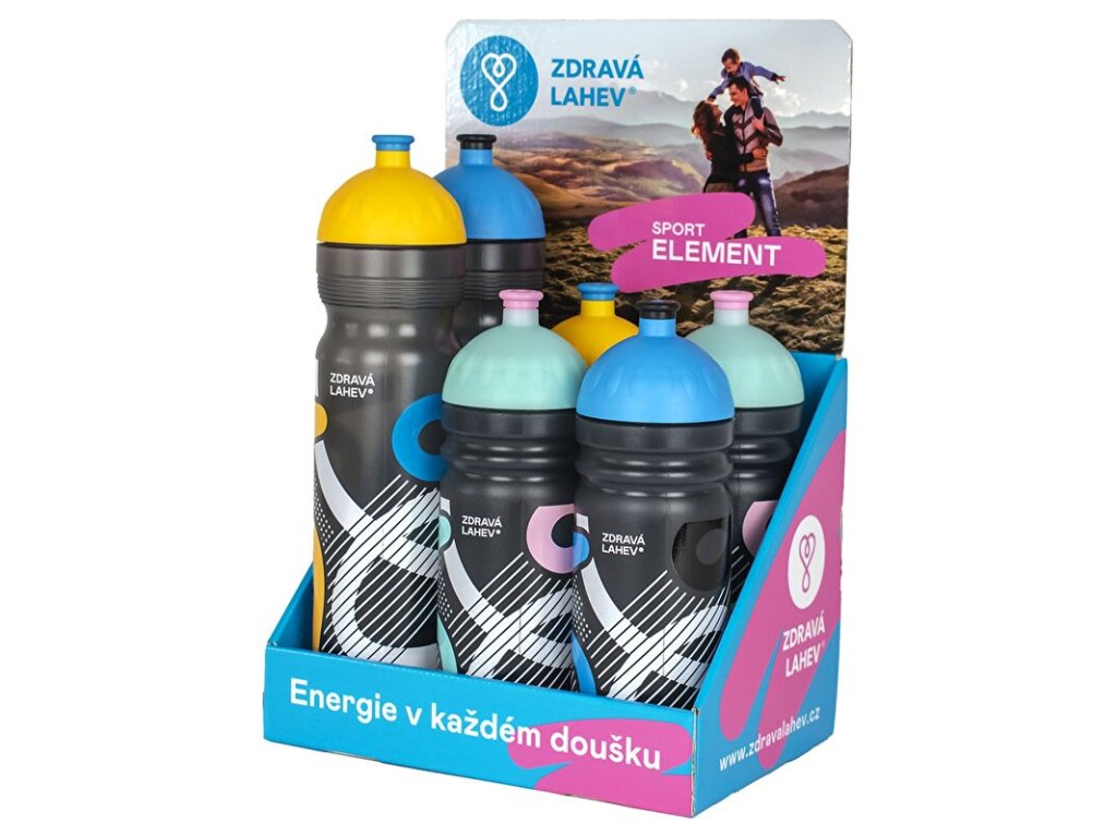 set 6ks Zdravých lahví Sport ELEMENT s kartonovým prodejním stojánken, pro umístění na pultsložení: